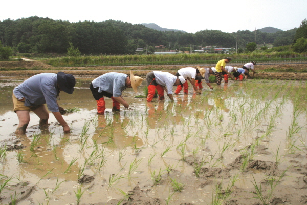망종(芒種)은 24절기 아홉 번째로 6월 5일입니다. ‘망(芒)’은 벼나 보리처럼 까끄라기가 있는 곡식을 뜻하니, 그를 심기에 좋은 때를 말합니다. 지역마다 조금 다르기는 하지만 이 시기를 전후해 모내기를 합니다. 곡우 지나 모판을 만든 농부는 한 뼘쯤 자란 연둣빛 어린모를 보며 “가장 여리고 순한 몸짓 하나로/ 섬뜩한 초록, 초록의 들판을/ 청청청청 열어젖히는”(고재종「초여름」에서) 모습을 상상합니다. 그리고 물 잡아놓은 논에 모내기를 합니다. “흙을 향해 허리 굽히는 게 모든 일의 시작인/ 농부들 푸른 모춤을 지고/ 산 그림자 속으로 걸어 들어가네/ 뒷걸음치며 산에 모를 심네/ 바위 위에도 모를 꽂아 놓았네”(함민복「논 속의 산 그림자」에서) 모내기는 그저 논바닥에 모를 꽂는 것이 아닙니다. 그 논으로 들어온 모든 관계에 모를 심는 것입니다. 그래서 산에도 모를 심는 것이 되고 바위에도 모를 심는 게 됩니다. 어젯밤 개구리 울음 사이에도, 별자리 사이에도, 바람에 살랑거렸던 물결 사이에도 모를 심는 것입니다. 농부가 흙을 향해 허리를 굽힌 것은 이 모든 관계들에게 절을 한 것입니다. 그래서 벼농사는 모든 우주적 관계를 잇는 ‘대지의 내면’ 살림입니다. 농부는 생명적 관계를 잇고 살찌게 하여 지속가능한 양식과 삶을 일구는 생명의 예술가입니다. 흙살림농장에는 토종볍씨를 보존하는 아랫논과 식구들 먹을 벼를 심는 웃논이 있습니다.