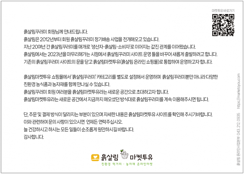 흙살림꾸러미 회원님께 안내드립니다