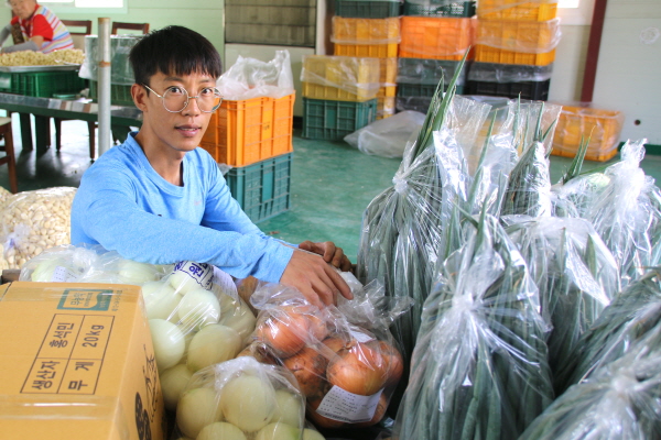 홍석민씨는 노지 2만 평에 마늘·감자·양파·대파·무·생강 등을 재배한다. 수확한 농산물은 대부분 학교 급식의 식자재로 쓰인다. 10년 전 아버지 홍찬기씨가 학교급식을 예측하고 차곡차곡 준비해 온 덕분에 탄탄하게 기반을 갖추었다. “앞으로는 신선, 편이 농산물이 대세라고 생각한다. 그래서 박피부터 세척까지 전처리 시설을 갖추어 농산물을 유통할 수 있게되면 좋겠다.” 홍석민씨의 포부다.
