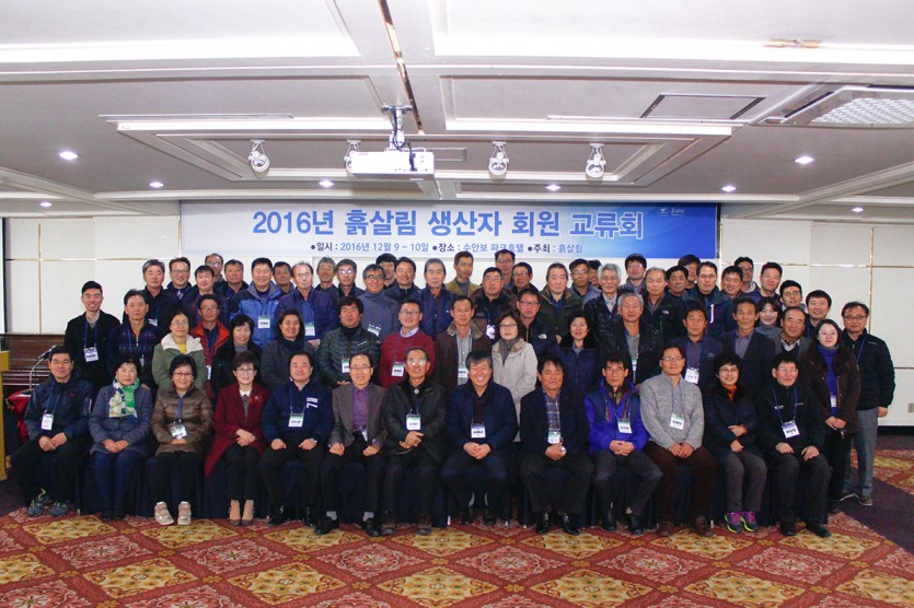 12월 9~10일 이틀간 충주 수안보파크호텔에서 흙살림 생자자 회원 교류회가 열렸다. 이번 교류회에는 서울 급식을 담당하는 생산농가와 꾸러미 및 직거래 담당 생산농가, 흙살림 유기농자재를 적극 활용하고 있는 농가 등등이 참가했다. 이와 더불어 흙살림의 현황과 향후 목표를 이야기하고, 상생할 수 있는 방법을 함께 모색해보고자 흙살림 임직원들도 자리를 함께 했다.