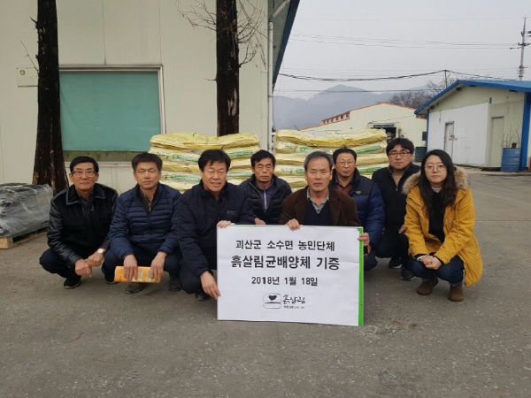 흙살림은 2018년 1월 18일 흙살림괴산공장에서 괴산군 소수면 농업인단체협의회에 흙살림균배양체 100포를 기증했다.