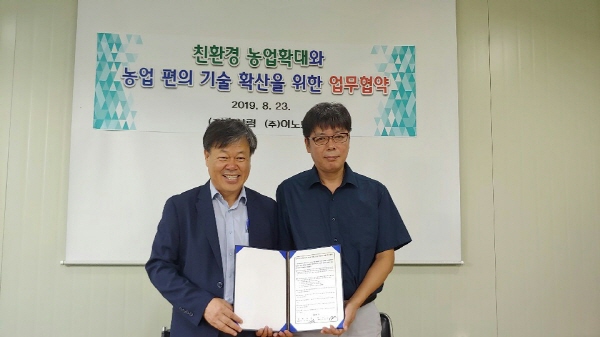 흙살림은 8월 23일 흙살림청주센터에서 (주)이노드와 친환경농업 확대와 편의 기술 확산을 위한 업무 협약을 체결했다.