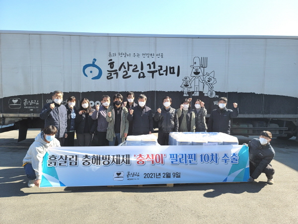 흙살림은 2월 9일 흙살림청주센터에서 충해방제제인 ‘충식이’를 필리핀에 수출했다.
